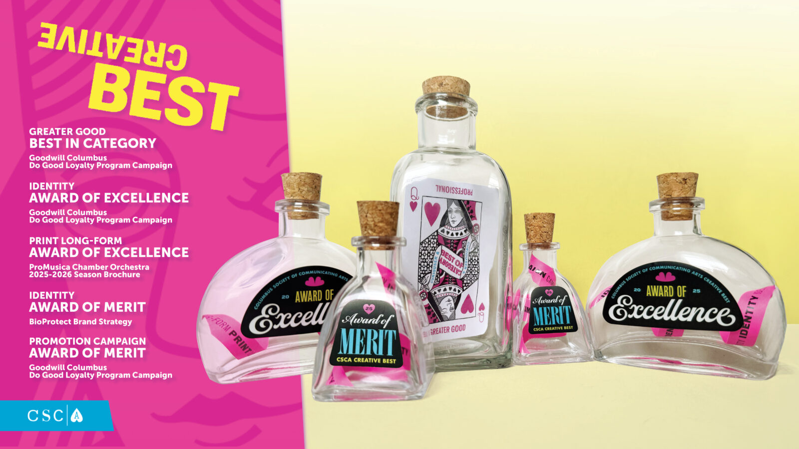 The 2025 Columbus Society of Communicating Arts (CSCA) Creative Best Awards took place last Thursday. As one of the top creative awards ceremonies for the region, Origo was honored to receive FIVE major awards, including a Best of Category, an Award of Excellence and an Award of Merit for our Do Good loyalty program campaign created for Goodwill Columbus, an Award of Excellence for the season brochure of the ProMusica Chamber Orchestra, and an Award of Merit for the brand strategy developed for BioProtect. See below to learn more about these exciting projects.